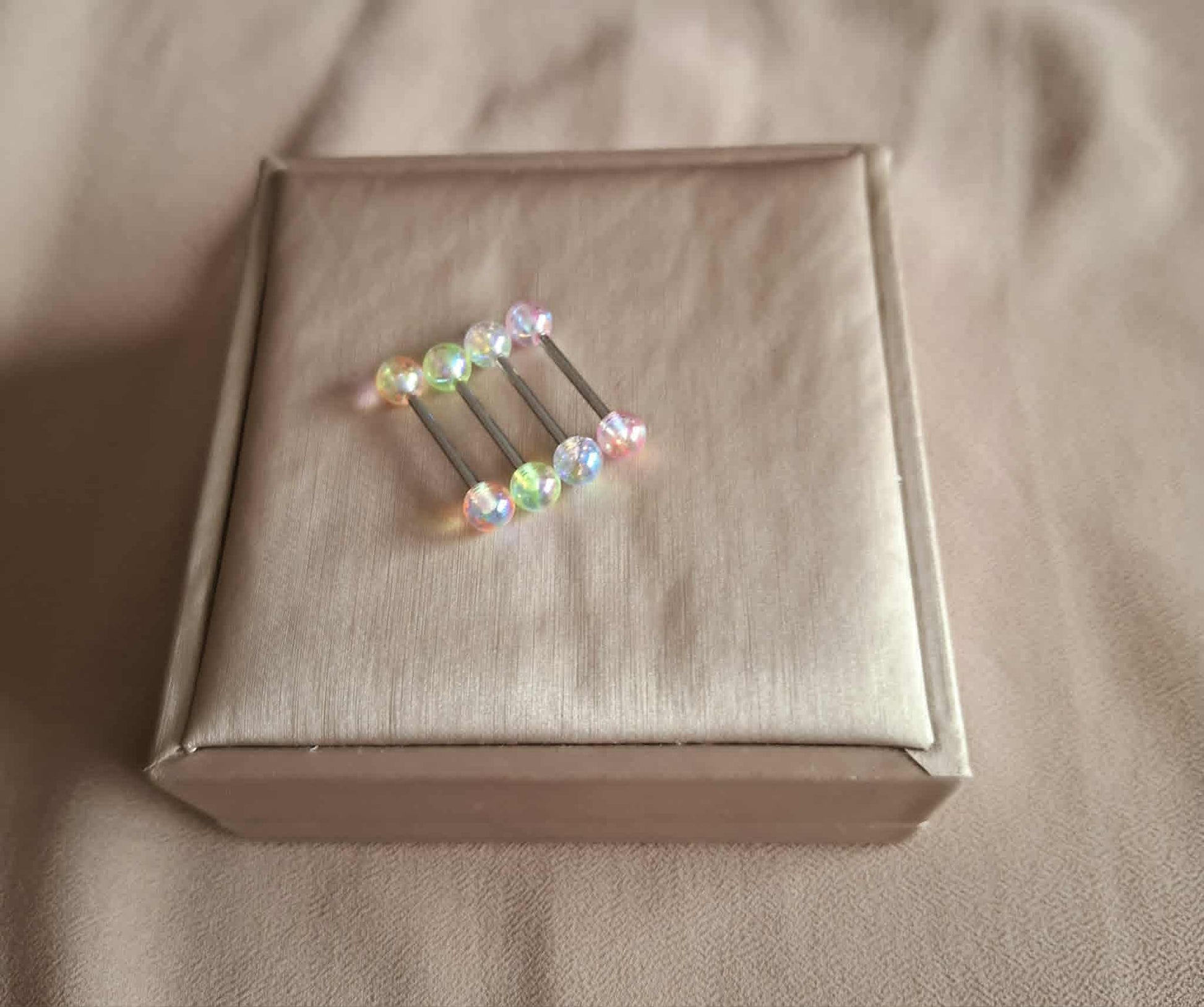 Zungenpiercing aus Chirurgenstahl mit Pastell- Plastik-Kugeln